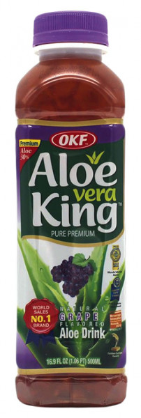 Wasser, Aloe Vera Saft 22%, Aloe Vera Gel 8%, Säureregulator:E330, E331, Traubenaroma 0,2%, Stabilisatoren: E327; E418. Farbstoff: E163, Zucker.