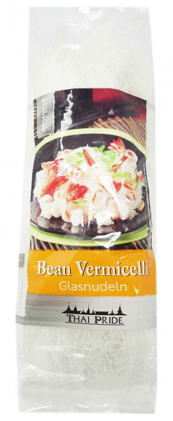 Glasnudeln bestehen aus Wasser und Stärke, darum sind sie in gekochtem Zustand fast durchsichtig. Für die Thai Pride Glasnudeln wird die Stärke aus Mungbohnen gewonnen. Glasnudeln werden nicht gekocht, sondern ziehen nur im Wasser. Sie haben einen neutralen Eigengeschmack und eignen sich als Zutat für verschiedene Gerichte der asiatischen Küche.