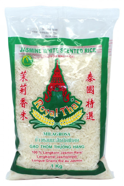 Der Langkorn Jasmin-Reis stammt aus Thailand, wo er unter dem Namen "Thai Hom Mali Rice" bekannt ist und für seinen charakteristischen Duft sowie seine zarte Textur geschätzt wird. Der Reis entfaltet beim Kochen ein blumiges Aroma und bleibt dabei locker und körnig. Ideal als Beilage zu asiatischen Gerichten, eignet er sich hervorragend für traditionelle Rezepte. Der Reis ist zu 100% aus natürlichem Langkorn Jasmin-Duftreis gefertigt.